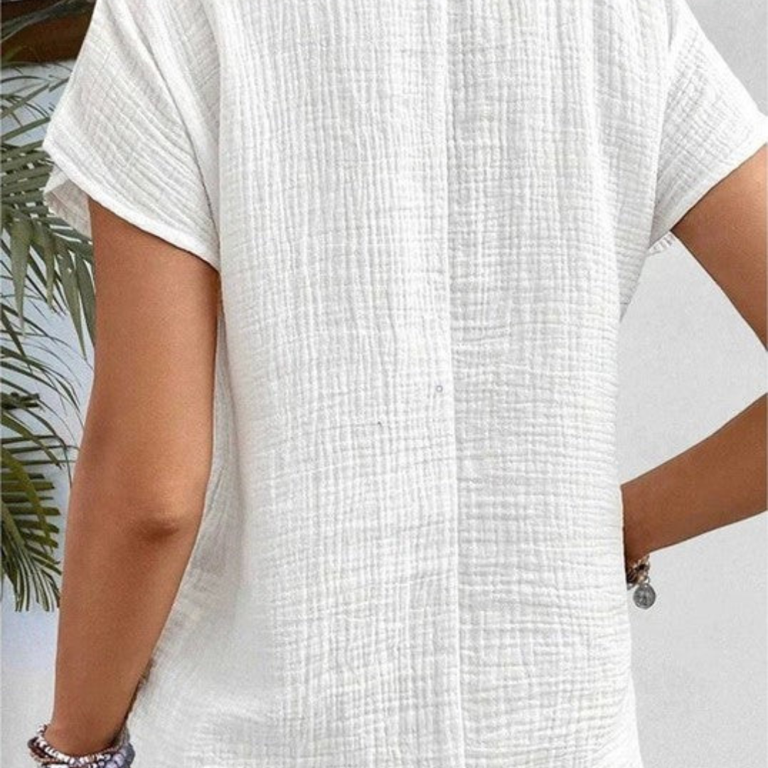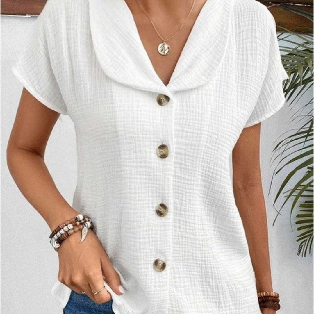 The Nikka™️ Top blends chic comfort with effortless sophistication. Perfect for casual outings or relaxed office wear, this top features a stylish collar and button accents, adding a polished yet laid-back touch to any look.